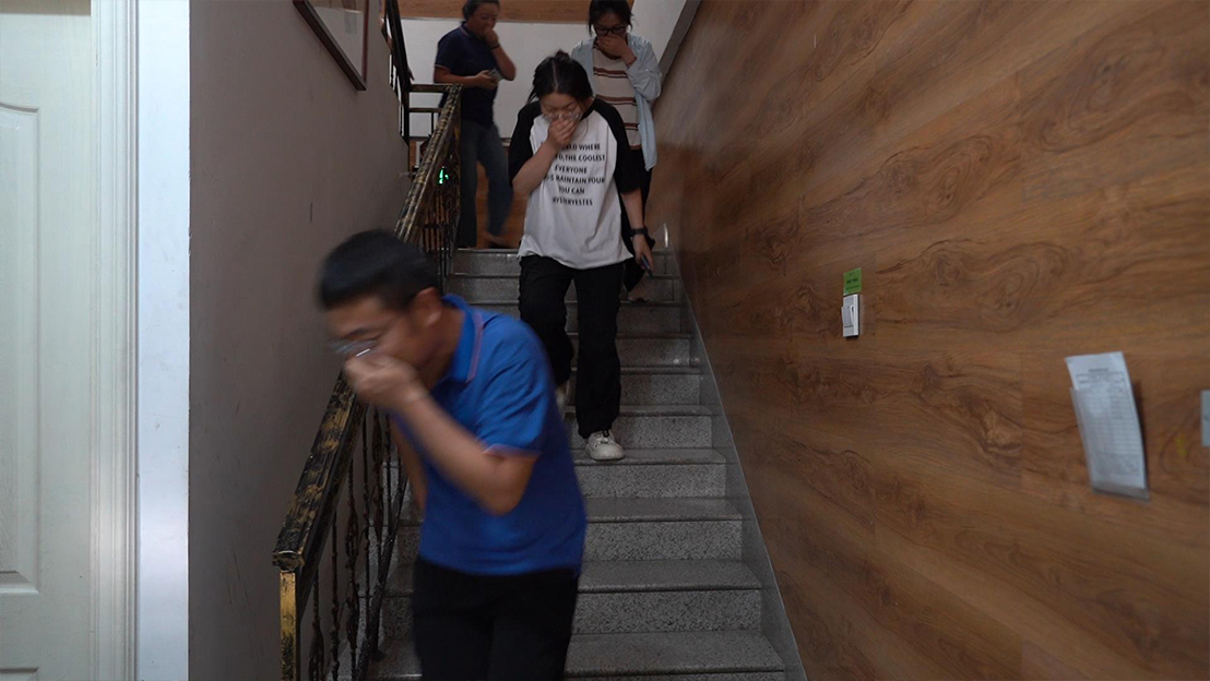 6月9日下午,随着消防警报响起,消防逃生演练正式拉开帷幕。演习员工按照指定路线,捂住口鼻,低头躬腰,迅速有序地从安全通道疏散撤离到安全地带,逃离“火灾”现场。