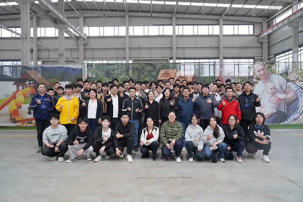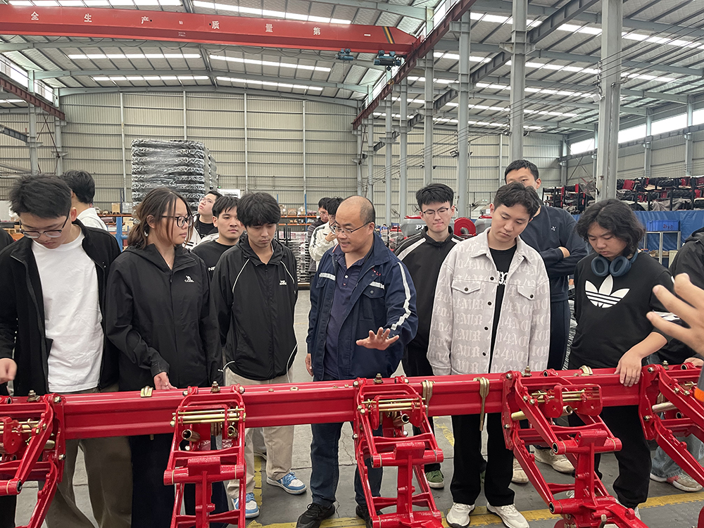 学子们深入生产车间与集团儿童游乐板块产品展厅,近距离观摩高端农机组装与生产线,沉浸式体验产品设计与用户需求的紧密结合。通过实地参观与互动交流,课堂上的理论知识真正在车间里“活”起来,学子们对机械设计、制造流程与市场应用以及未来职业方向有了更直观的理解。